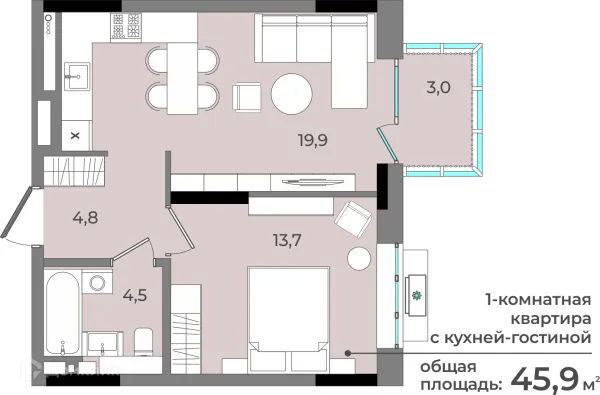 1 комн. квартира в Ижевске в ипотеку от 46 470 руб/месяц