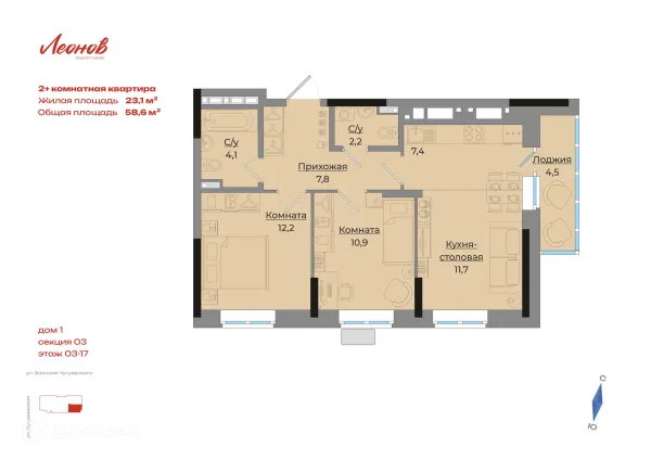 2 комн. квартира в Ижевске в ипотеку от 58 652 руб/месяц