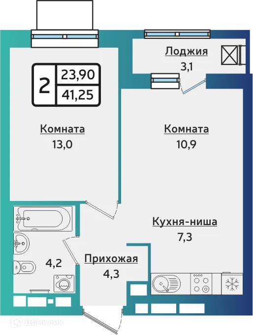 2 комн. квартира в Ижевске в ипотеку от 41 981 руб/месяц