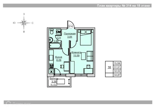 1 комн. квартира в Ижевске в ипотеку от 31 972 руб/месяц
