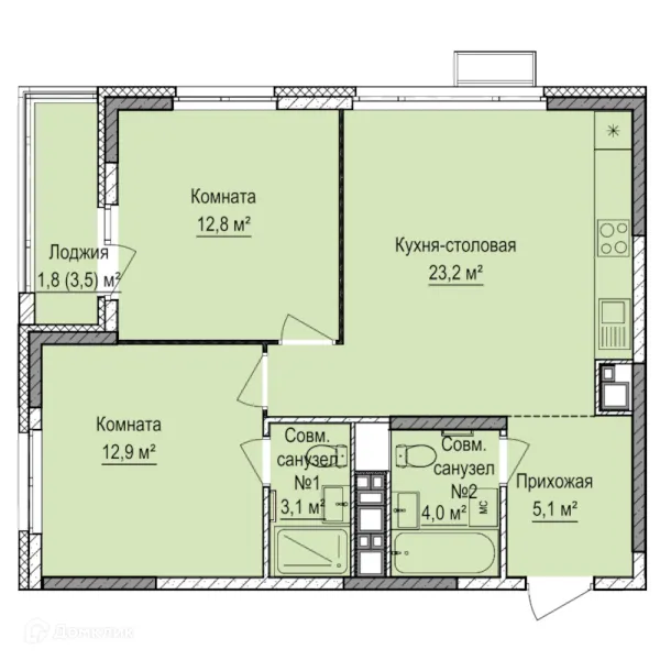2 комн. квартира в Ижевске в ипотеку от 52 495 руб/месяц