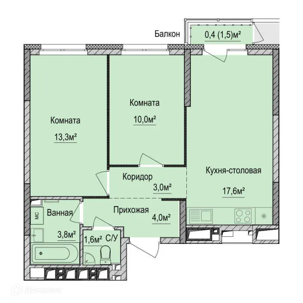 2 комн. квартира в Ижевске в ипотеку от 41 060 руб/месяц