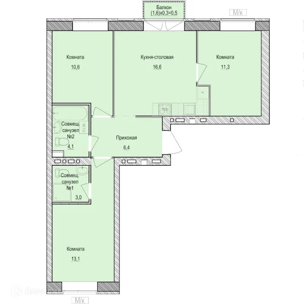 3 комн. квартира в Ижевске в ипотеку от 49 641 руб/месяц