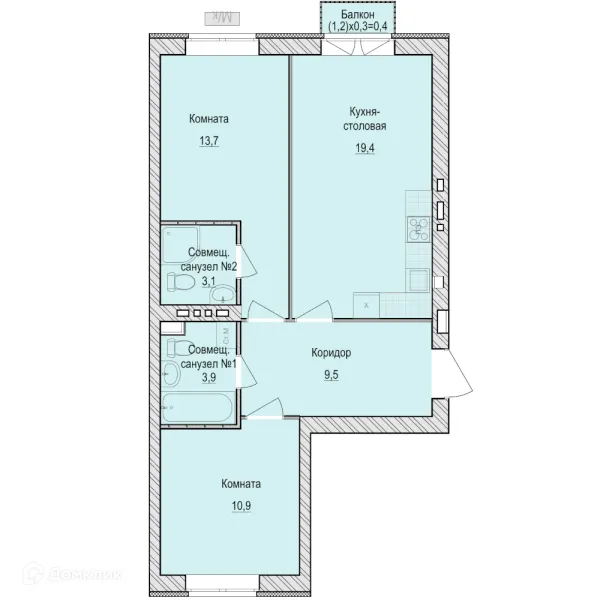 2 комн. квартира в Ижевске в ипотеку от 48 686 руб/месяц