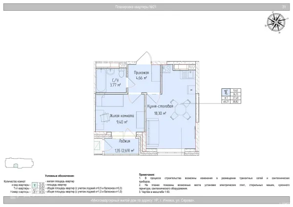 2 комн. квартира в Ижевске в ипотеку от 32 260 руб/месяц