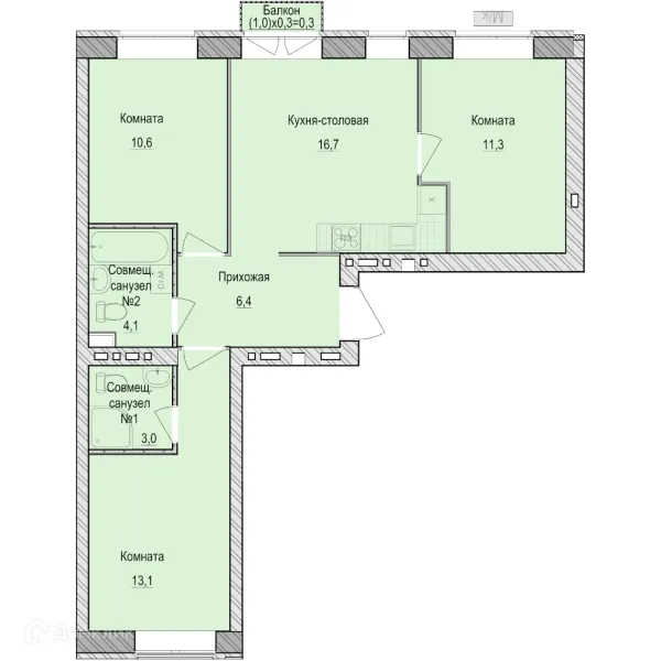 3 комн. квартира в Ижевске в ипотеку от 57 910 руб/месяц