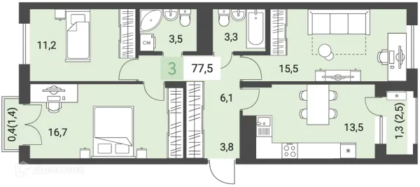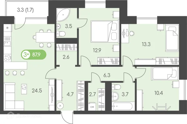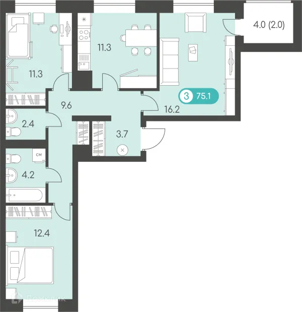 3 комн. квартира в Ижевске в ипотеку от 75 039 руб/месяц