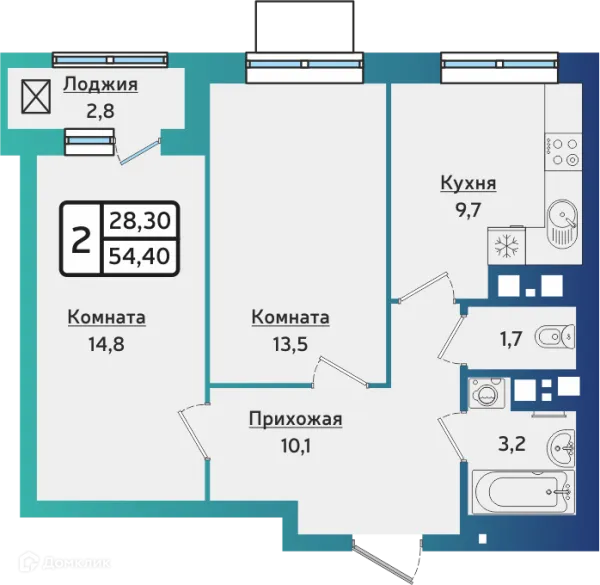 2 комн. квартира в Ижевске в ипотеку от 42 413 руб/месяц
