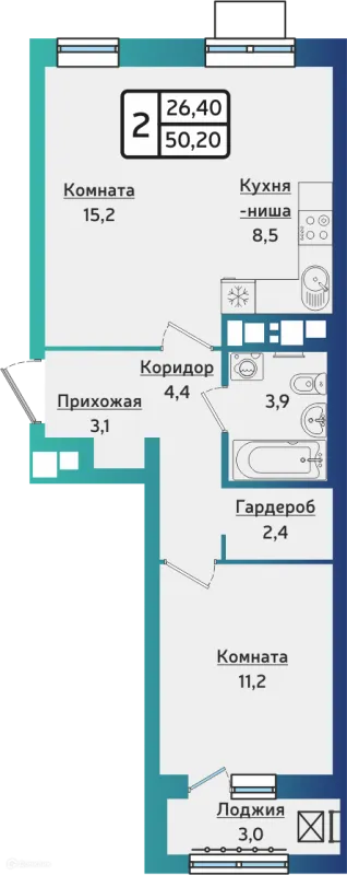 2 комн. квартира в Ижевске в ипотеку от 39 101 руб/месяц