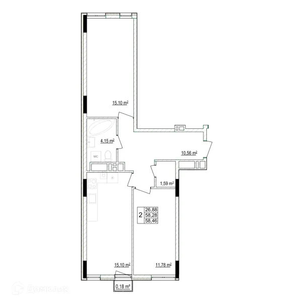2 комн. квартира в Ижевске в ипотеку от 41 564 руб/месяц