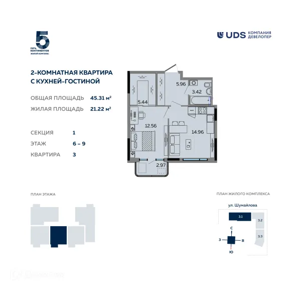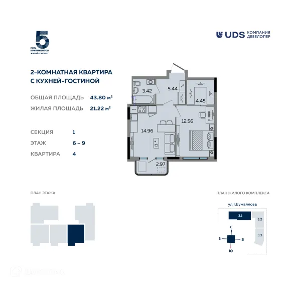 2 комн. квартира в Ижевске в ипотеку от 44 487 руб/месяц