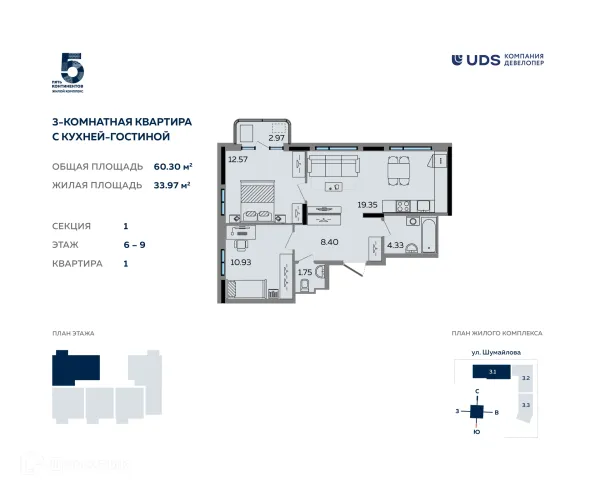 3 комн. квартира в Ижевске в ипотеку от 63 376 руб/месяц
