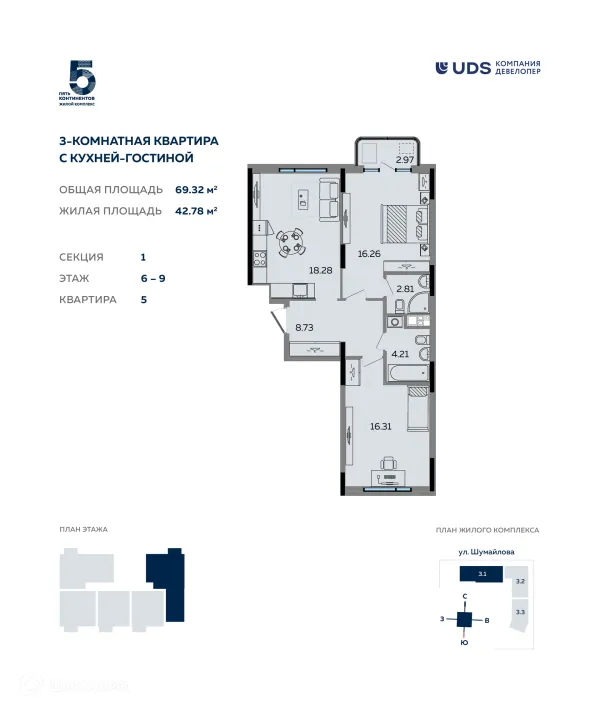 3 комн. квартира в Ижевске в ипотеку от 69 331 руб/месяц