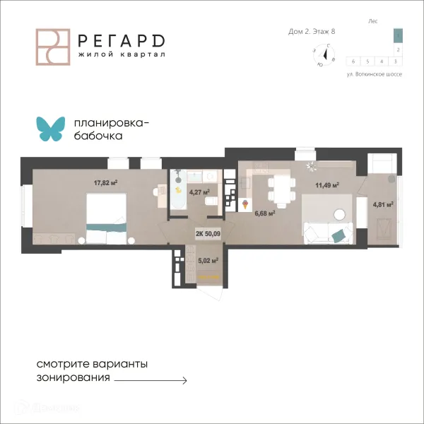 2 комн. квартира в Ижевске в ипотеку от 56 599 руб/месяц