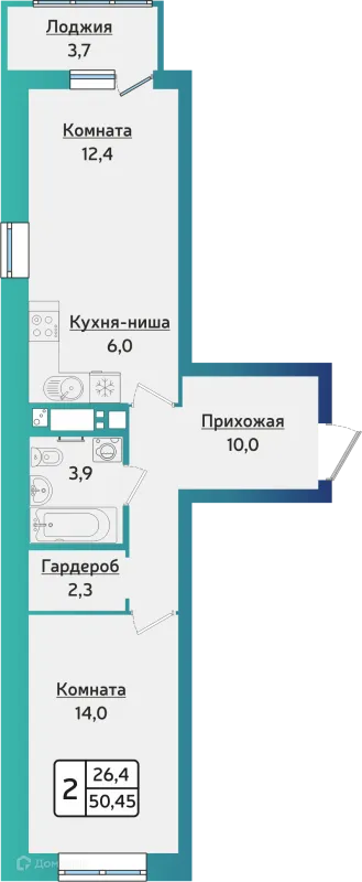 2 комн. квартира в Ижевске в ипотеку от 48 526 руб/месяц