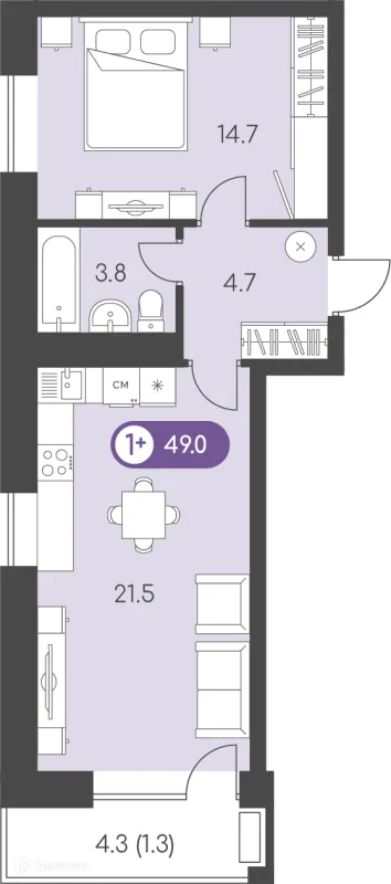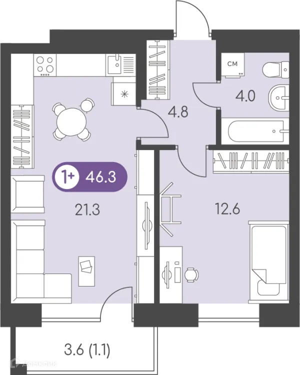1 комн. квартира в Ижевске в ипотеку от 46 470 руб/месяц
