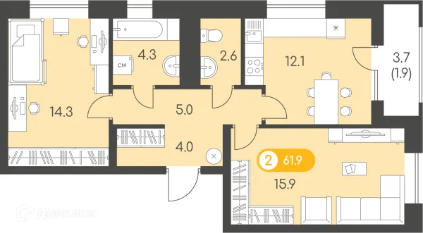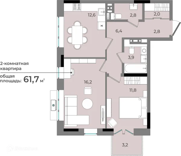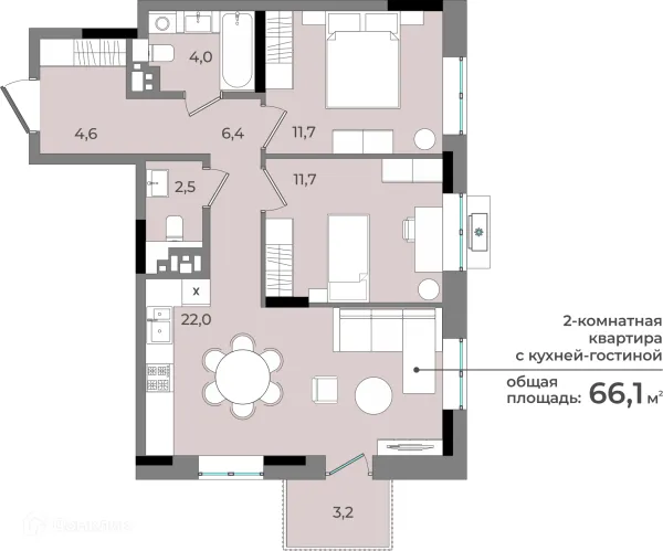 2 комн. квартира в Ижевске в ипотеку от 65 708 руб/месяц