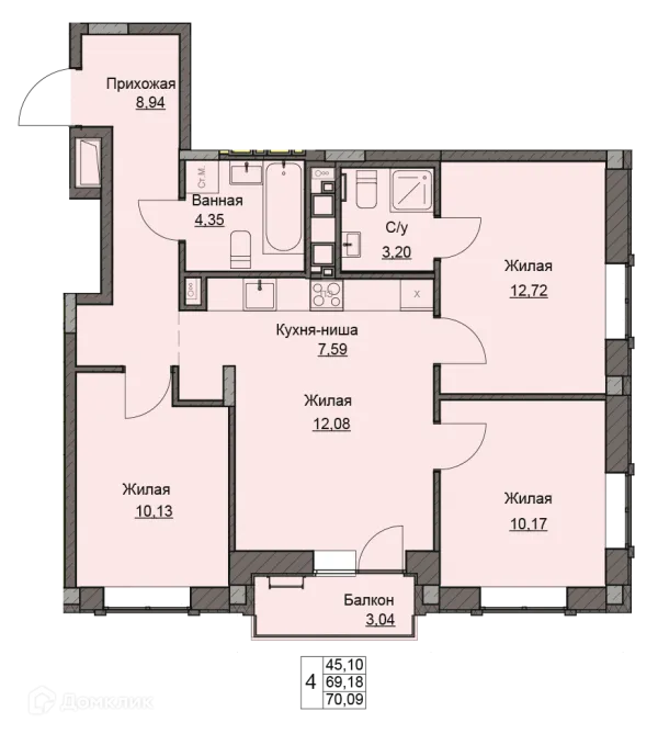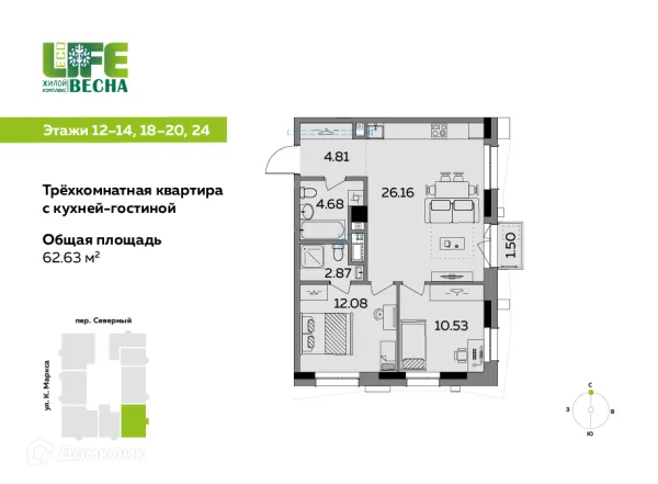 3 комн. квартира в Ижевске в ипотеку от 56 916 руб/месяц