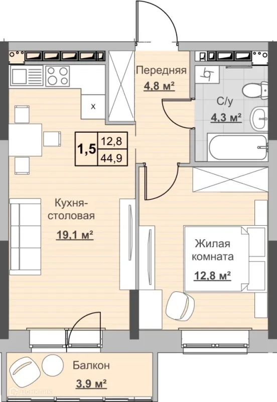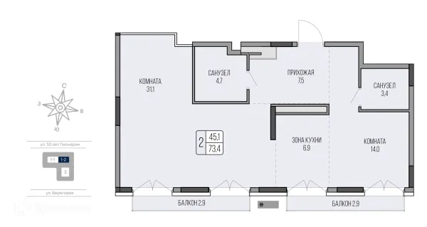 1 комн. квартира в Ижевске в ипотеку от 45 143 руб/месяц