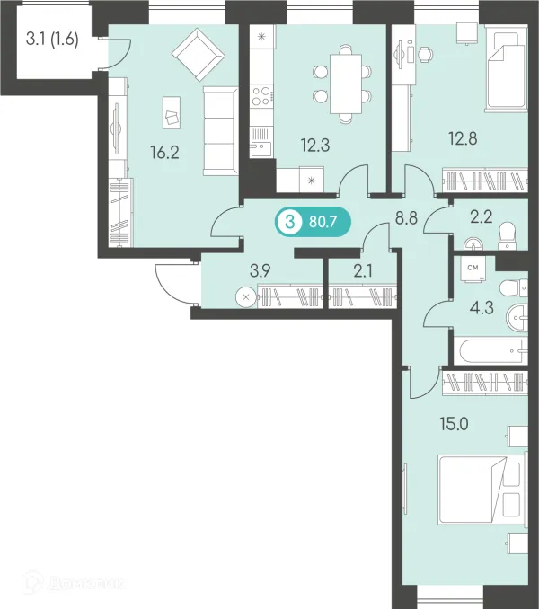 3 комн. квартира в Ижевске в ипотеку от 71 600 руб/месяц