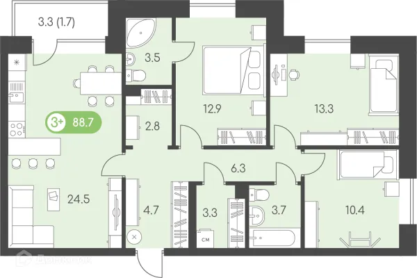 3 комн. квартира в Ижевске в ипотеку от 55 713 руб/месяц